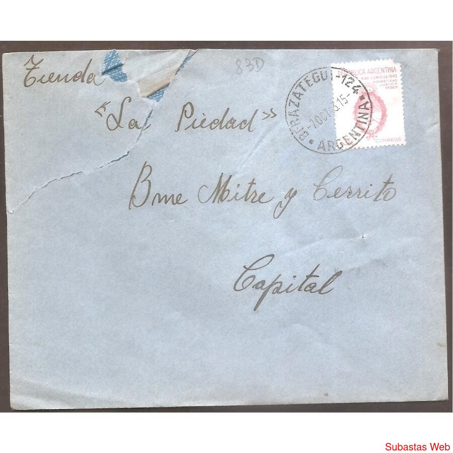 ARGENTINA 1943 SOBRE CIRCULADO NUMERO 83D