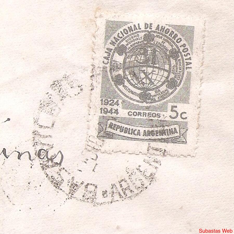 SOBRE CIRCULADO PROBABLEMENTE EN 1944, DE BASAVILVASO ENTRE RIOS A BUENOS AIRES – CAPITAL- FRANQUEO: DIA UNIVERSAL DEL AHORRO, MATASELLO DE BASAVILVASO, AL DORSO MATASELLO DE BUENOS AIRES BANDELETA