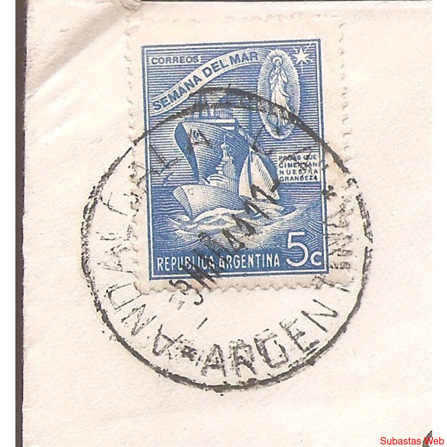 SOBRE CIRCULADO PROBABLEMENTE EL 5 DE MARZO DE 1944, DE ANDALGALA -CATAMARCA- ENTRE RIOS A BUENOS AIRES – CAPITAL- FRANQUEO: SEMANA DEL MAR, MATASELLO DE ANDALGALA AL DORSO UN SELLO REDONDO CON EL NUMERO 1717