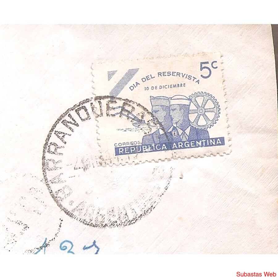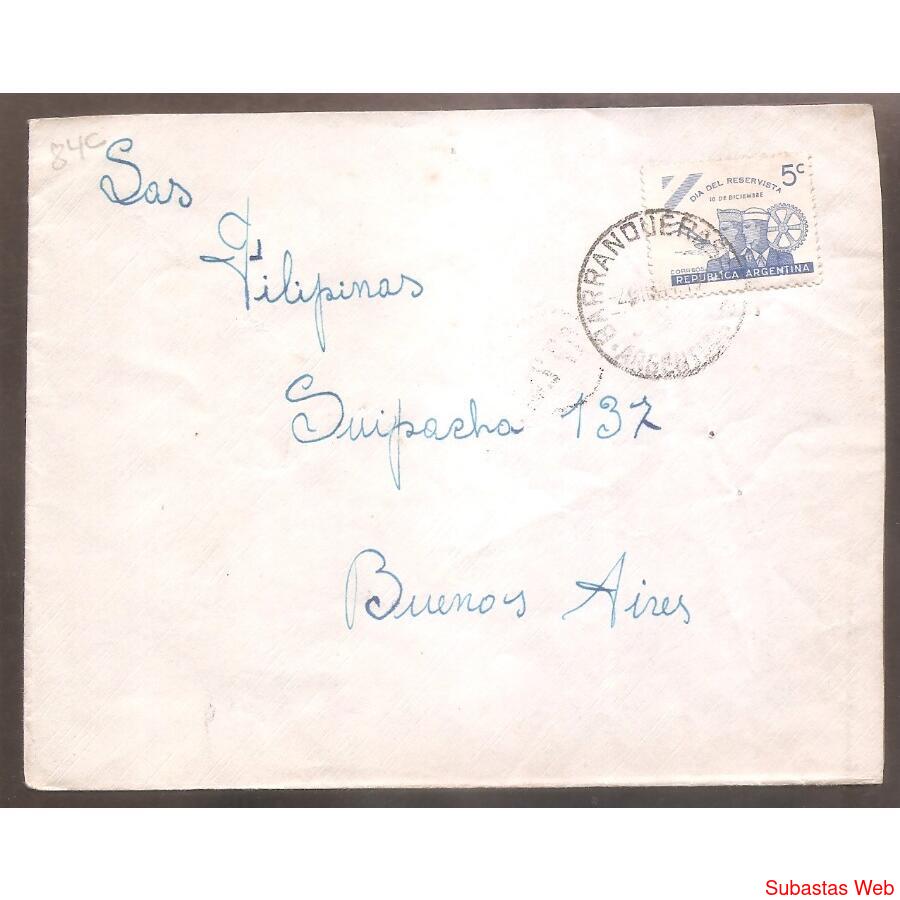 SOBRE CIRCULADO PROBABLEMENTE EN 1944, DE BARRANQUERAS -CHACO- ENTRE RIOS A BUENOS AIRES – CAPITAL- FRANQUEO: DIA DEL RESERVISTA, MATASELLO DE BARRANQUERAS AL DORSO UN SELLO REDONDO CON EL NUMERO 1728