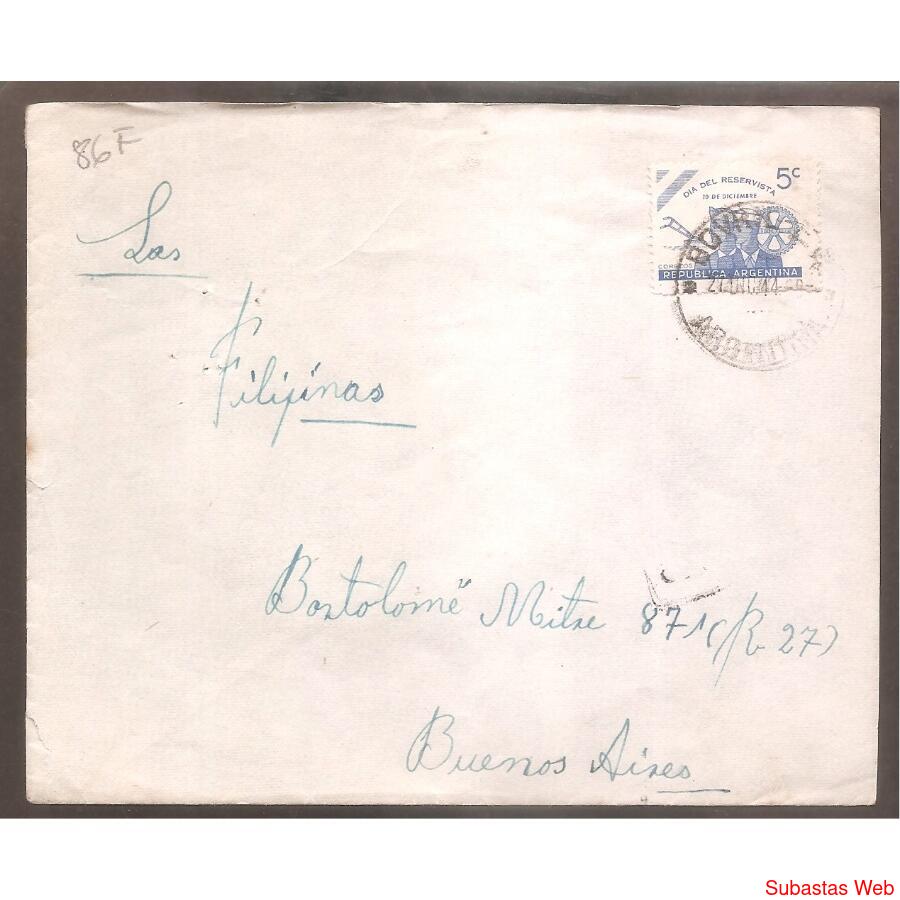 SOBRE CIRCULADOEL 21 DE DICIEMBRE DE 1944 DE BOVRIL -ENTRE RIOS- A BUENOS AIRES – CAPITAL- FRANQUEO: DIA DEL RESERVISTA, MATASELLO DE BOVRIL AL DORSO REMITENTE Y SELLO RECTANGULAR BORROSO