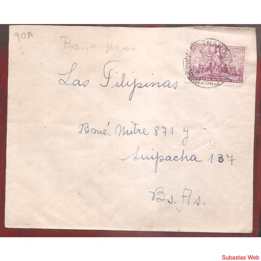 ARGENTINA 1946 SOBRE CIRCULADO NUMERO 90A