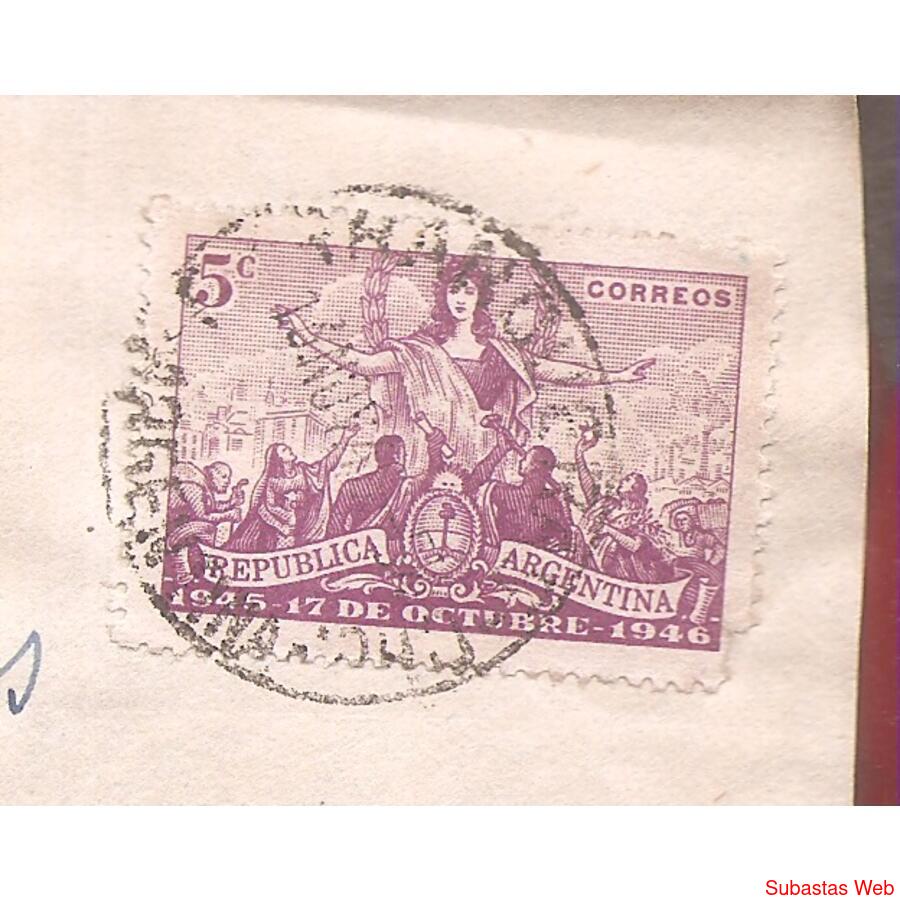 SOBRE CIRCULADO EL 16 DE NOVIEMBRE DE 1946 PROBABLEMENTE DE RANCUL -SAN LUIS- A BUENOS AIRES -CAPITAL, FRANQUEO: HOMENAJE AL 17 DE OCTUBRE. MATASELLO DE RANCUL AL DORSO NADA