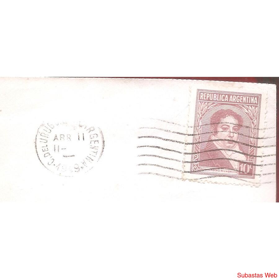 SOBRE CIRCULADO EL 11 DE ABRIL DE 1949 DE CONCEPCION DEL URUGUAY A BUENOS AIRES -CAPITAL- , FRANQUEO: PROCERES Y RIQUEZAS: RIVADAVIA DE 10ctvs: , MATASELLOS DE CONCEPCION DEL URUGUAY , AL DORSO MATASELLO BANDELETA DE BUENOS AIRES