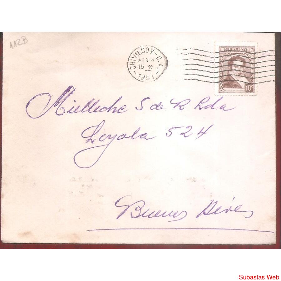 ARGENTINA 1951 SOBRE CIRCULADO NUMERO 112B