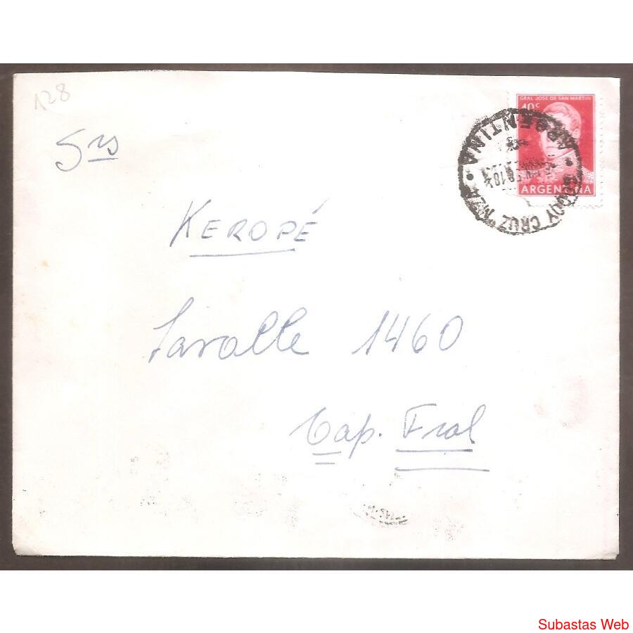 ARGENTINA 1958 SOBRE CIRCULADO NUMERO 128