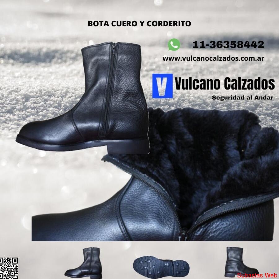 Bota en cuero forrada integramente en corderito con plantilla de corderito la suela es Febo el cuero por ser de primera calidad es blando, con horma ancha cómodas calentitas . Talles del 39 al 45.-Un guante para tus pies.