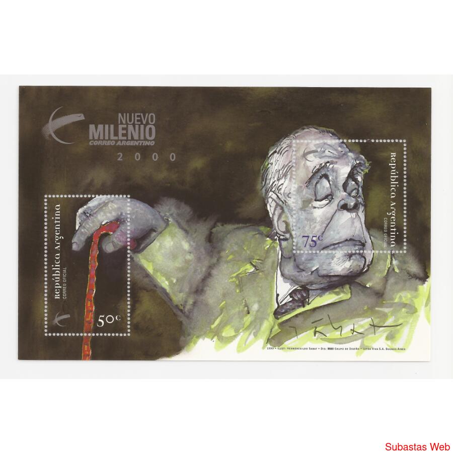 LA CULTURA ARGENTINA: Jorge Luis Borges - Catálogo GJ Hojita Block N° 124 - Sellos 2990 y 2991 - Estado Mint.- Características generales en: macristamps.com.ar