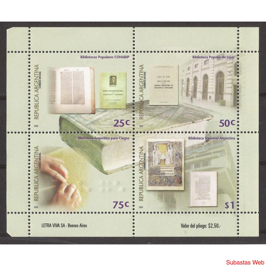 Hojita Block con cuatro sellos distintos valores faciales - El sello de 0.75 ctvs. presenta un relieve de sistema Braille.- Características generales en: macristamps.com.ar