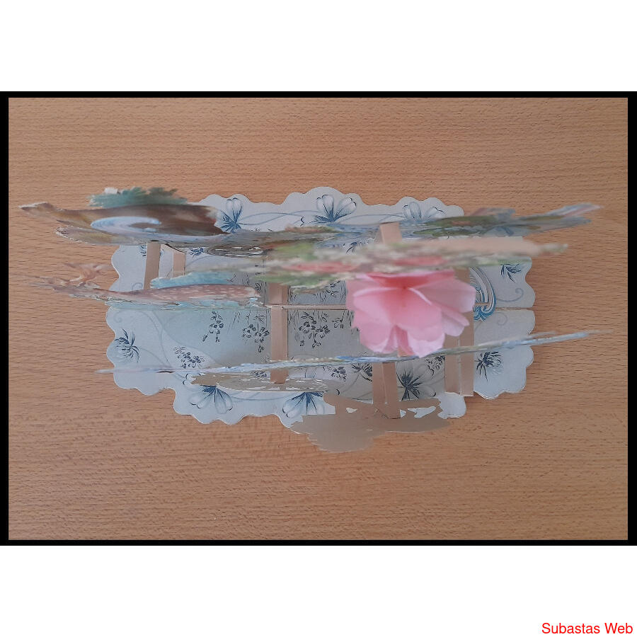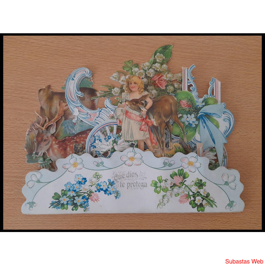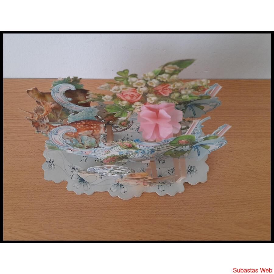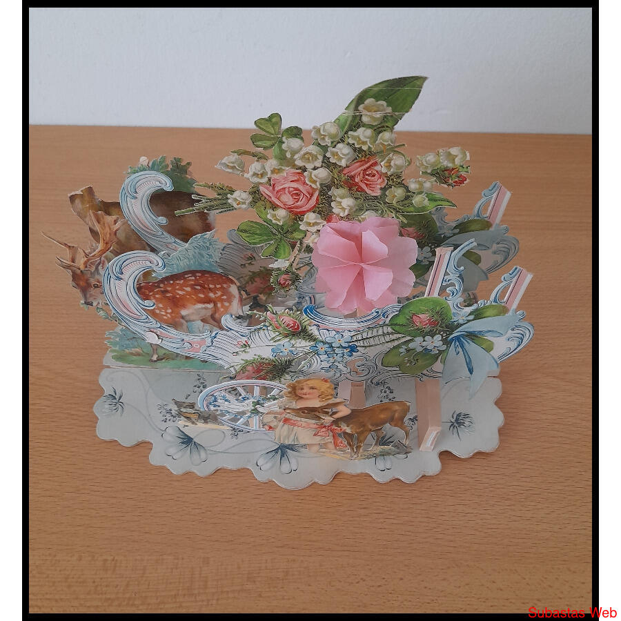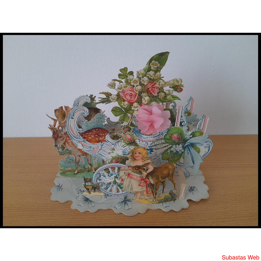 Hermoso adorno del periodo post-victoriano inmediato. (estilo die-cut) con apertura para exhibir en posición vertical.
