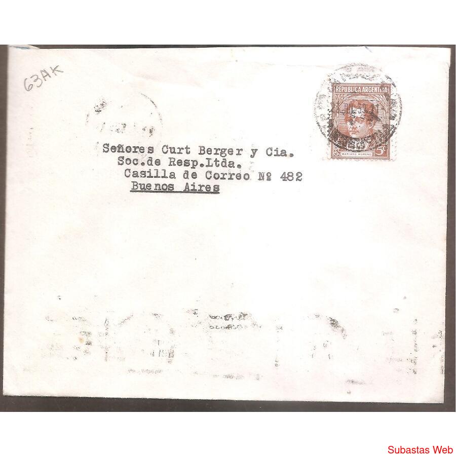 ARGENTINA 1939 SOBRE CIRCULADO NUMERO 63AK