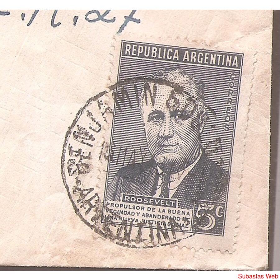 SOBRE CIRCULADO EL 6 DE MAYO DE 1946 DE BENJAMIN GOULD -CORDOBA- A BUENOS AIRES -CAPITAL, FRANQUEO: CONMEMORATIVO DE ROOSEVELT, MATASELLO DE BENJAMIN GOULD AL DORSO NADA