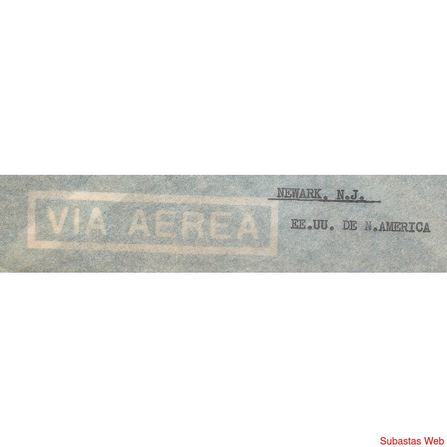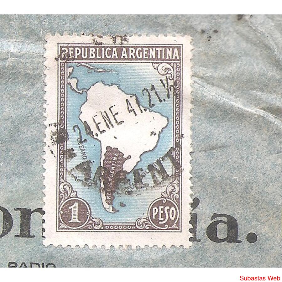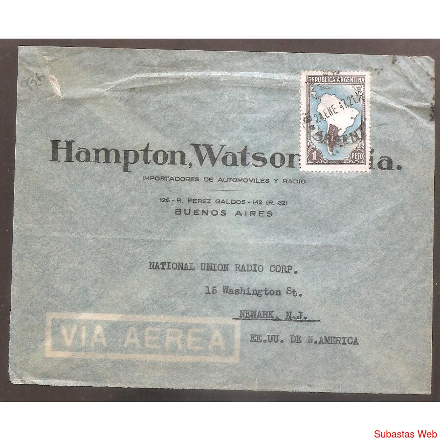 SOBRE CIRCULADO EL 24 DE ENERO DE 1947 DE BUENOS AIRES – NEWARK NUEVA JERSEY ESTADOS UNIDOS- , FRAN QUEO: PROCERES Y RIQUEZAS: MAPA SIN LIMITES, MATASELLO DE BUENOS AIRES, AL DORSO NADA – SOBRE MEMBRETADO: HAMPTON, WATSON Y CIA