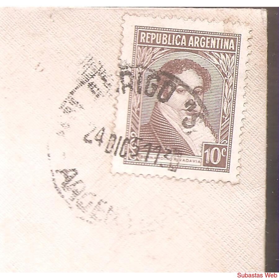SOBRE CIRCULADO EL 24 DE DICIEMBRE DE 1951 DE MALABRIGO -SANTA FE- PROBABLEMENTE A CAPITAL FEDERAL, , FRANQUEO: PROCERES Y RIQUEZAS,: RIVADAVIA DE 10ctvs: MATASELLOS DE MALABRIGO, AL DORSO NADA