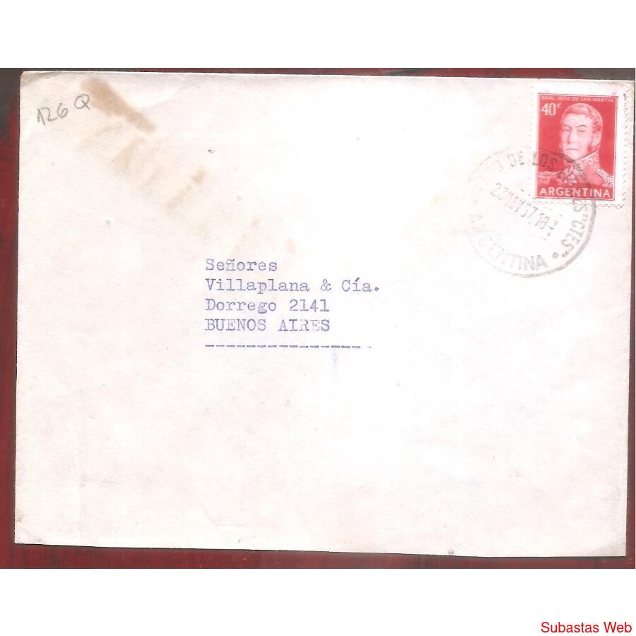 ARGENTINA 1957 SOBRE CIRCULADO NUMERO 126Q