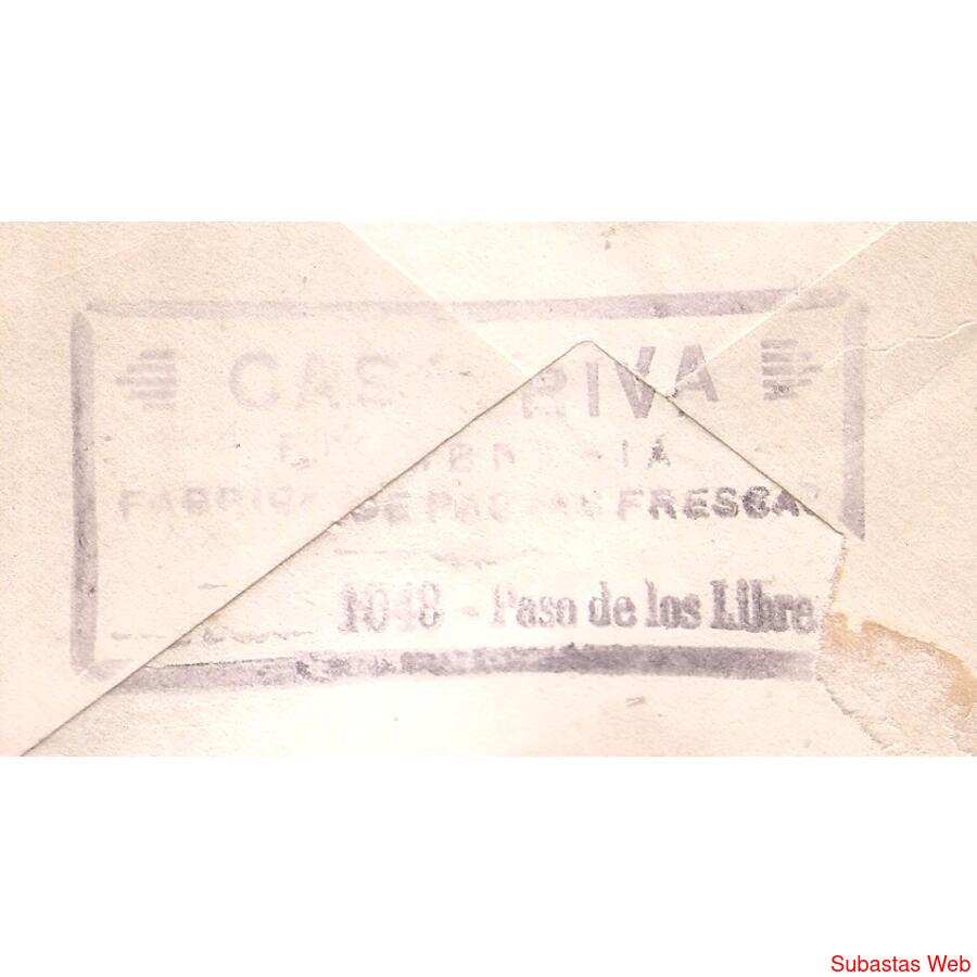 SOBRE CIRCULADO EL 26 DE AGOSTO 1957 DE PASO DE LOS LIBRES -CORRIENTES- A BUENOS AIRES -CAPITAL, FRANQUEO: SAN MARTIN DE 20ctvs. DE PROCERES Y RIQUEZAS, MATASELLO DE PASO DE LOS LIBRES , AL DORSO SELLO DEL REMITENTE