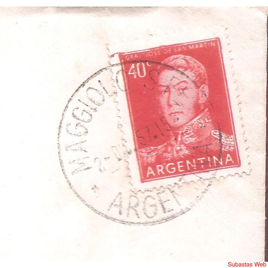 SOBRE CIRCULADO EN DICIEMBRE 1957 DE MAGGIOLO -SANTA FE- A BUENOS AIRES -CAPITAL, FRANQUEO: SAN MARTIN DE 40ctvs. DE PROCERES Y RIQUEZAS, MATASELLO DE MAGGIOLO, AL DORSO NADA