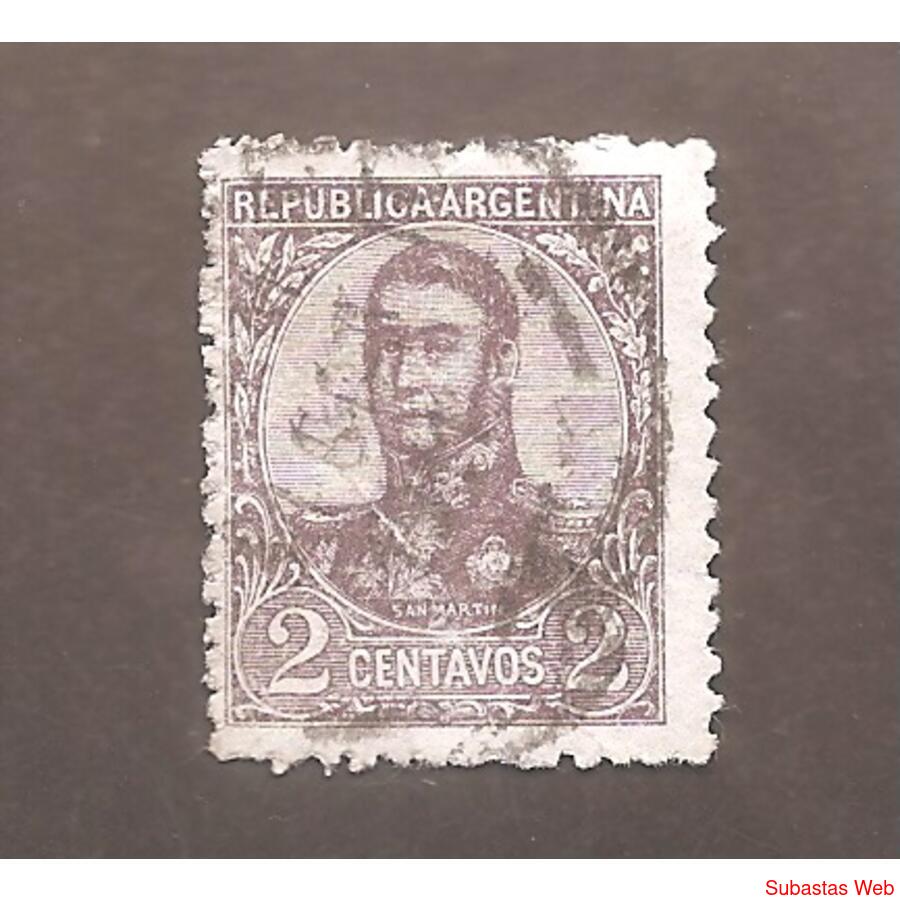 ARGENTINA 1908 SAN MARTIN EN OVALO CON FILIGRANA, DENTADO 13,5x12,5 USADA, NROCAT: MT:134