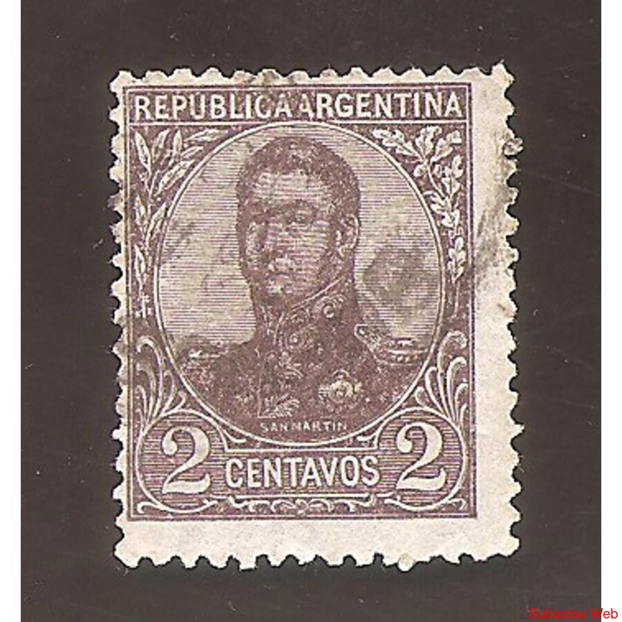 ARGENTINA 1908(134B) SAN MARTIN EN OVALO CON FILI 13,5x13,5