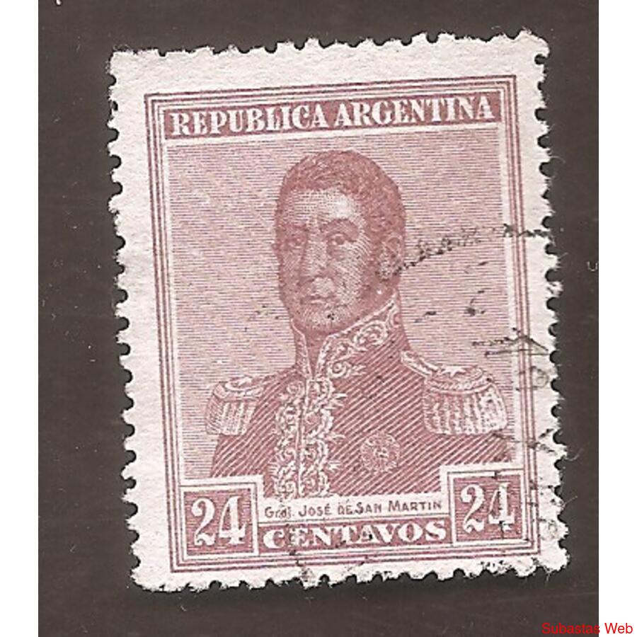 ARGENTINA 1918(237) SAN MARTIN SIN FILIGRANA 13,5x13,5 USADA