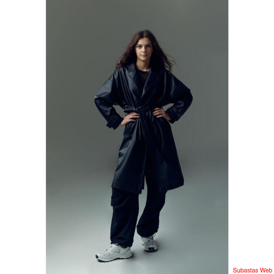 Tapado de cuerina con cinta de cierre y ajuste en la cintura, bolsillos ribete en los delanteros y trabilla en los puños.