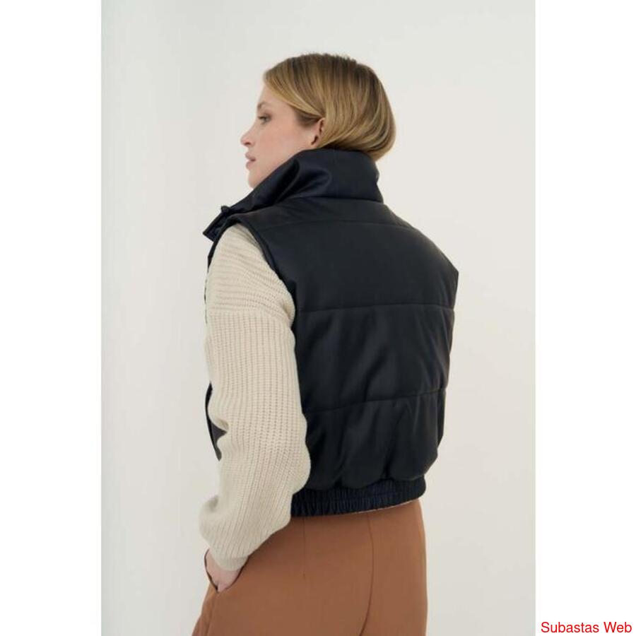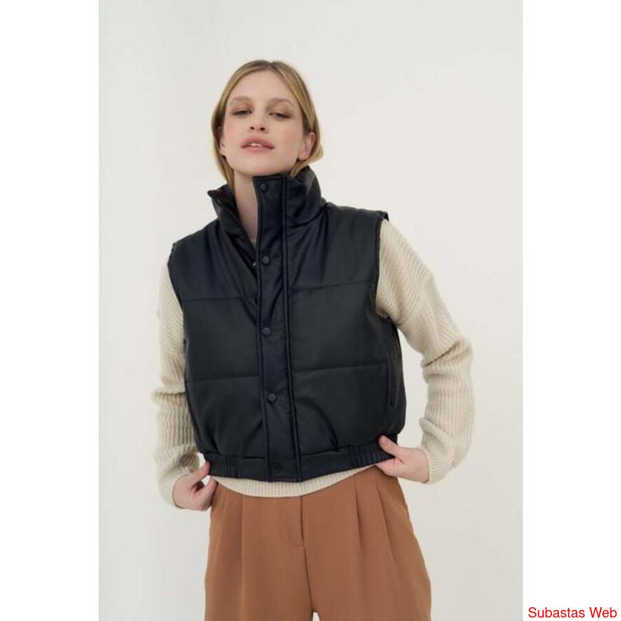 Chaleco de eco-cuero con bolsillo, cierre y botones.