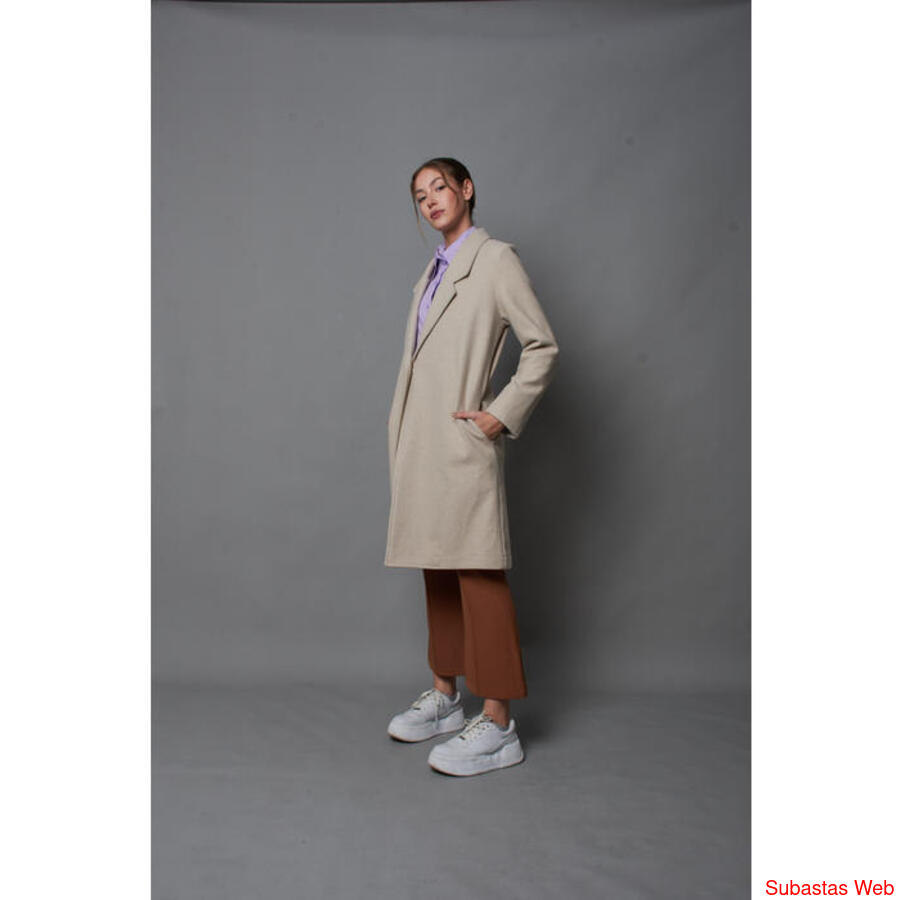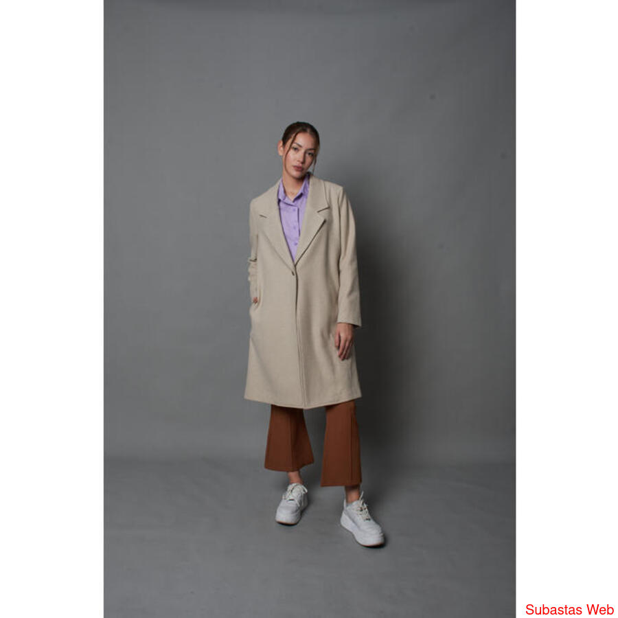 Tapado largo de paño de silueta recta, cuello smoking y dos bolsillos en los laterales. Cierre con un botón frontal.
