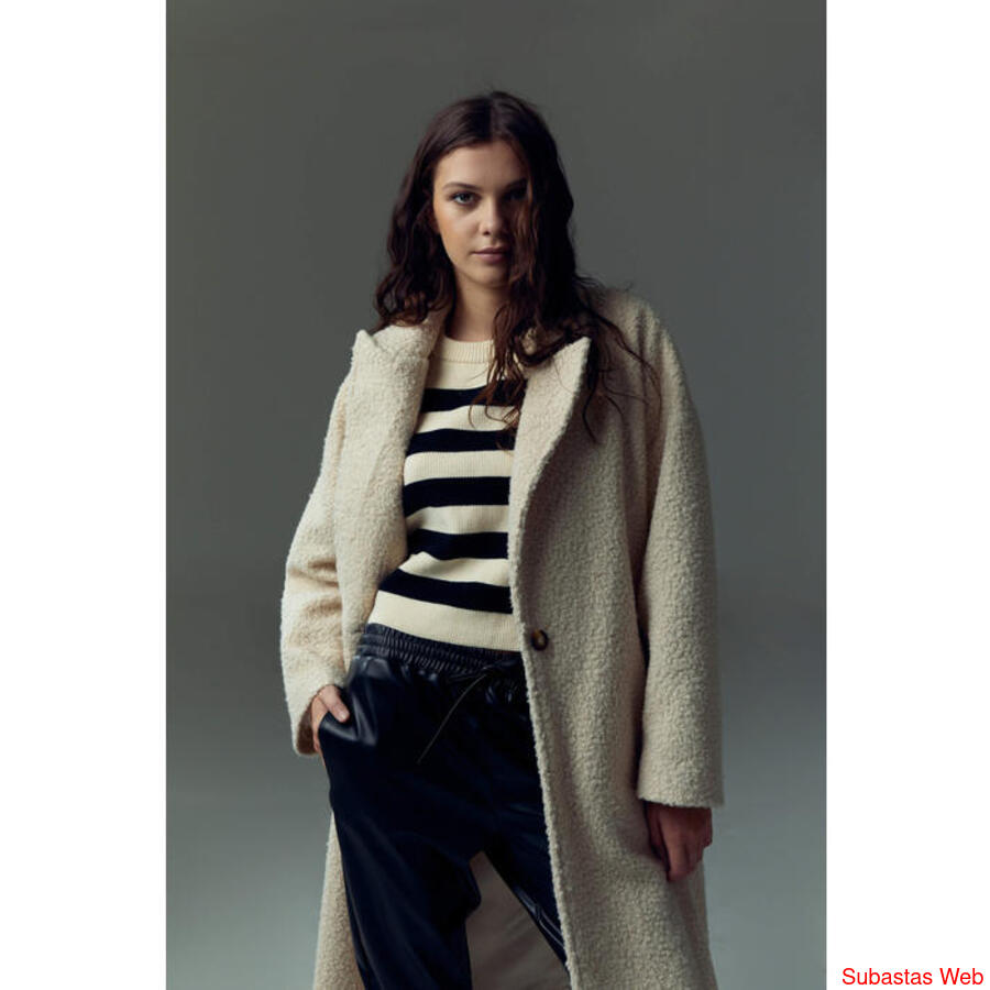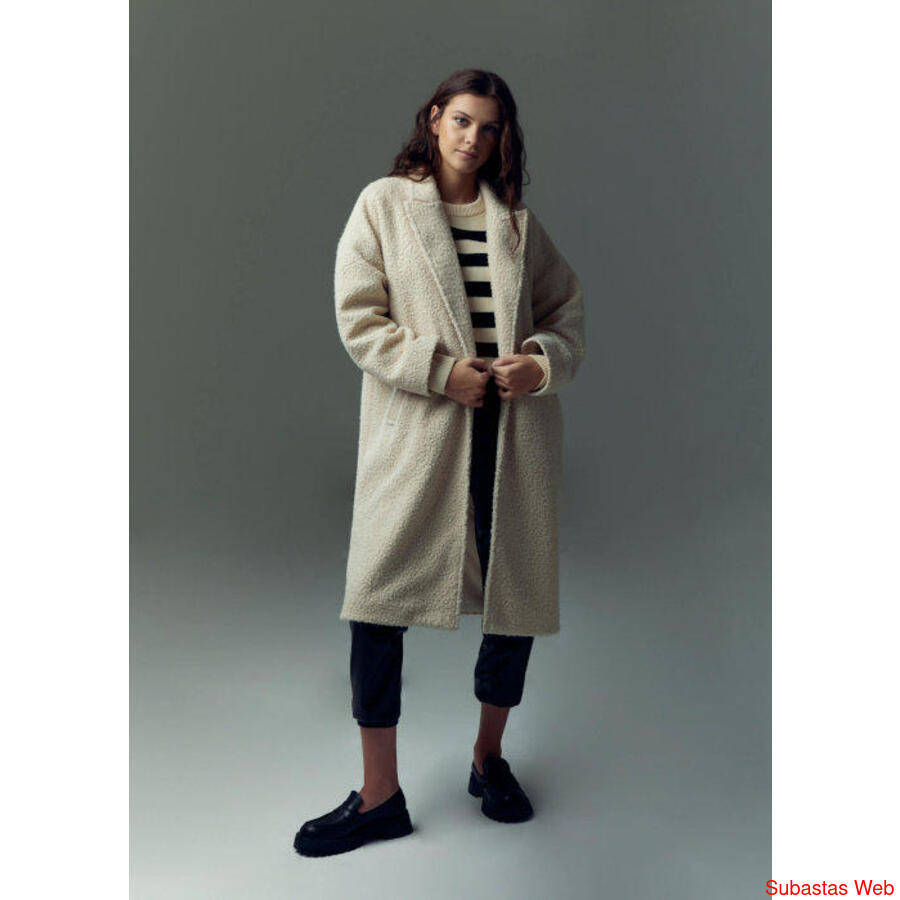 Tapado de bouclé, recto, con bolsillos ribete en el delantero.