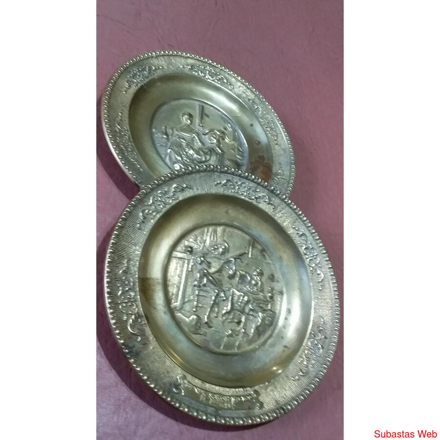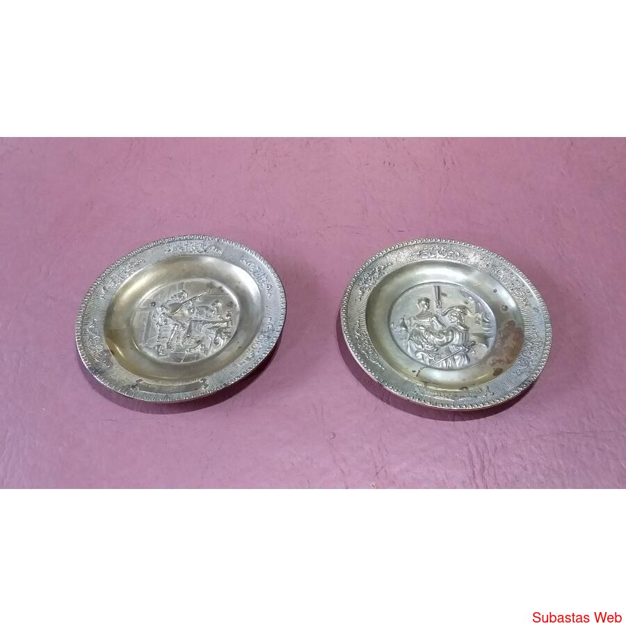 Plato De Bronce (el Par) Con Relieve 0pilarsur
