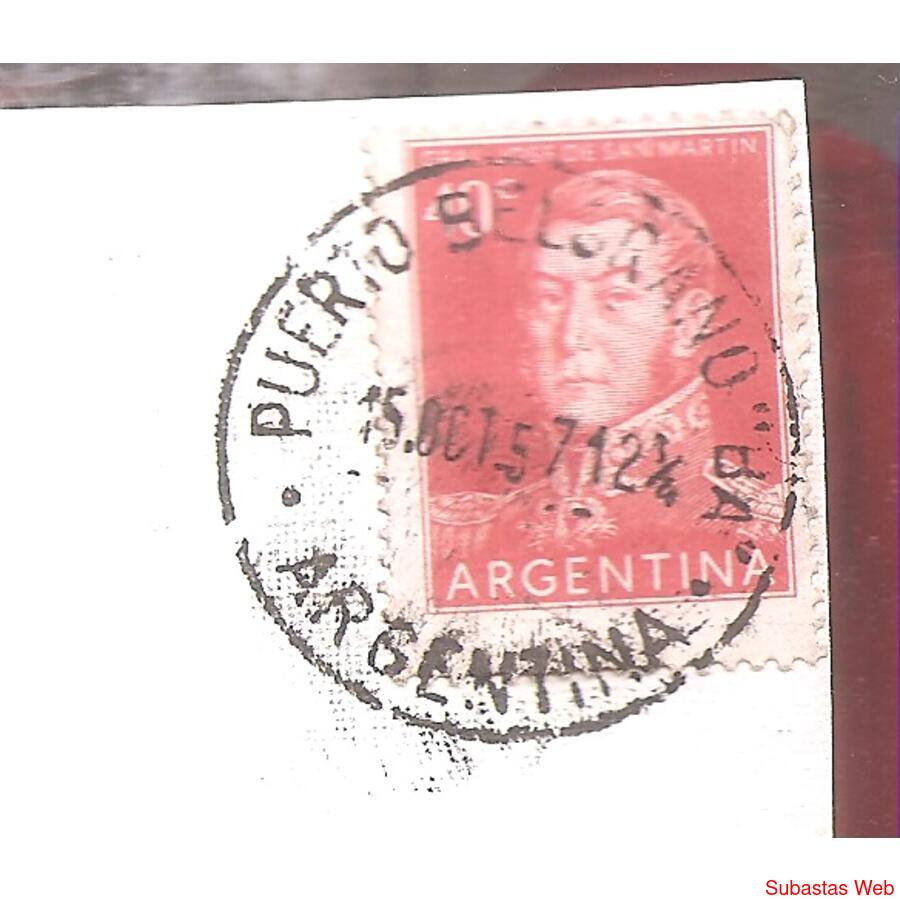 SOBRE (SOLO EL FRENTE) CIRCULADO EL 15 DE OCTUBRE DE 1957, DE PUERTO BELGRANO A BUENOS AIRES, FRANQUEO, SAN MARTIN DE 0,40 PROCERES Y RIQUEZAS MATASELLO DE PUERTO BELGRANO, NO EXISTE DORSO