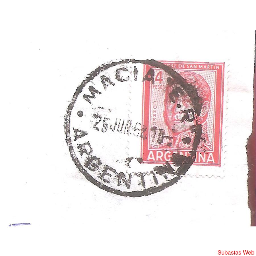FRENTE DE SOBRE CIRCULADO EL 25 DE JUNIO DE 1962 DE MACIA, ENTRE RIOS - A BUENOS AIRES- , FRANQUEO SAN MARTIN DE $4 PROCERES Y RIQUEZAS. MATASELLO DE MACIA, NO HAY DORSO