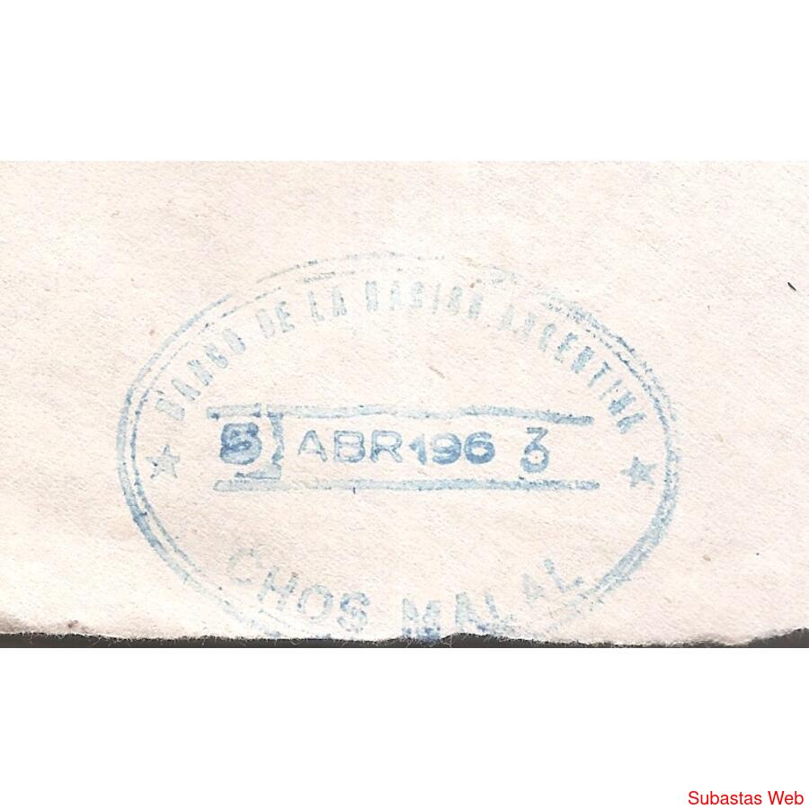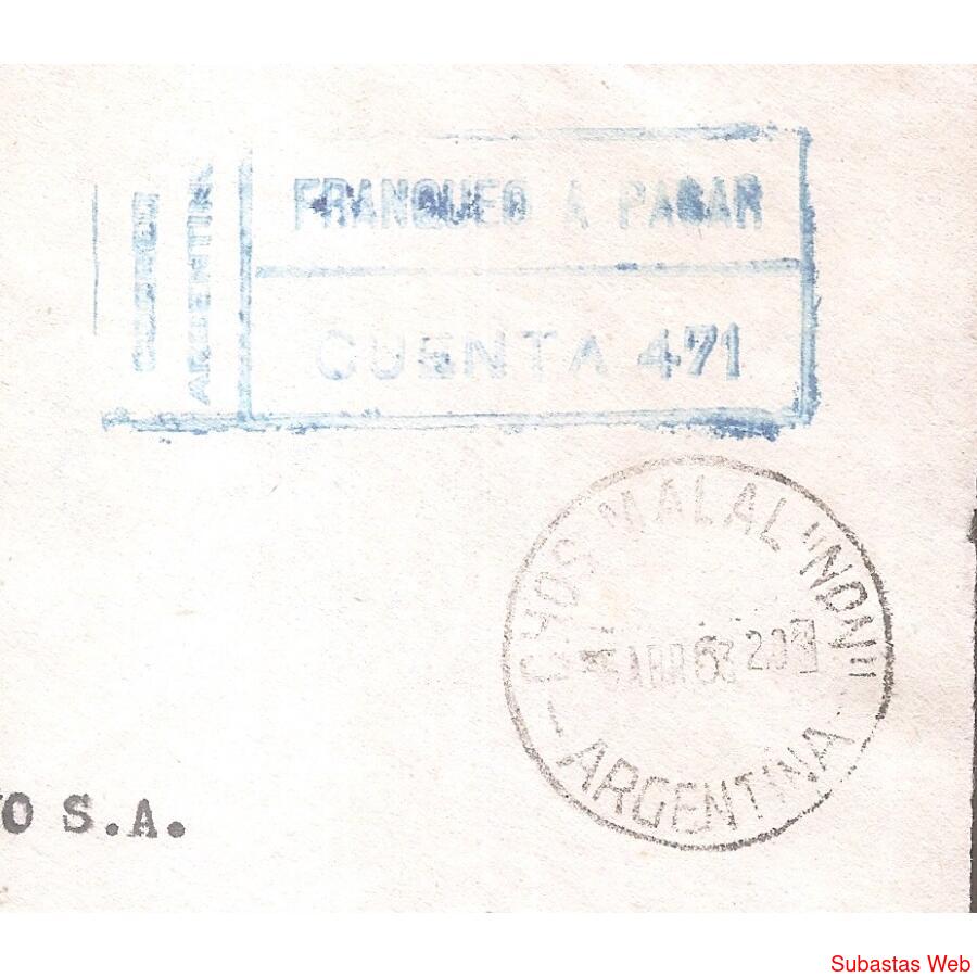 FRENTE DE SOBRE CIRCULADO EL 5 DE ABRIL DE 1963  DE CHOS MALAL -  A  BAHIA BLANCA- ,  FRANQUEO A PAGAR .  MATASELLO DE CHOS MALAL, ,  SELLO DEL BANCO DE LA NACION,  NO HAY DORSO