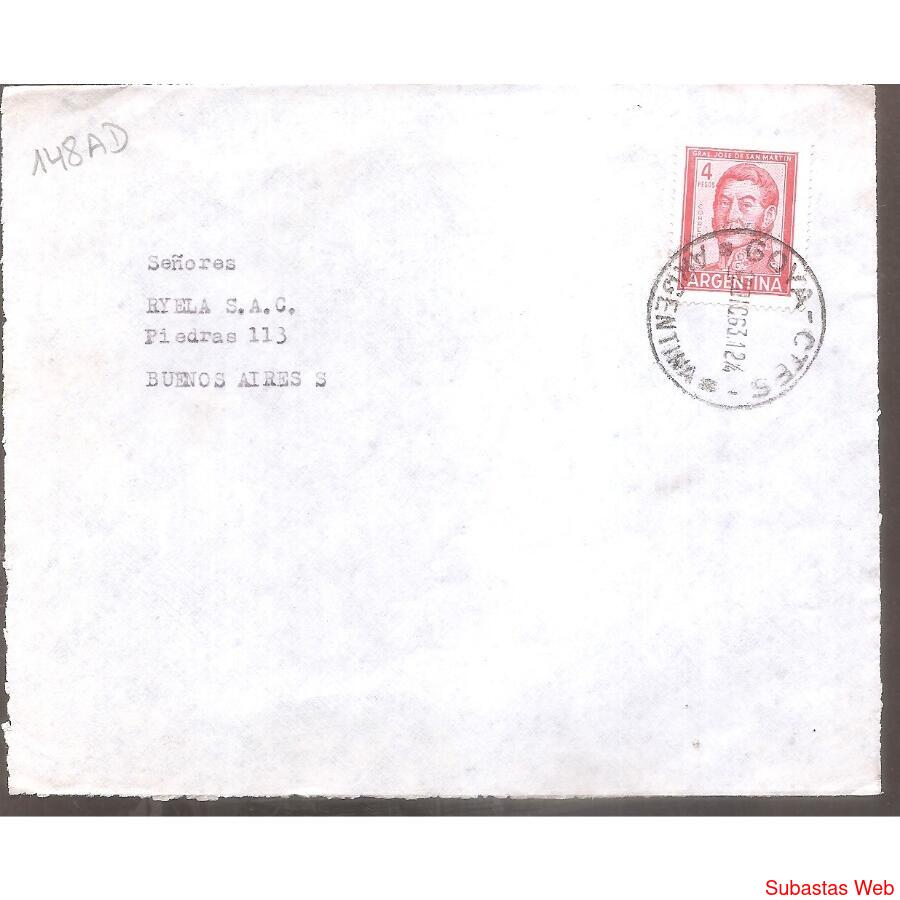 ARGENTINA 1963 SOBRE CIRCULADO NUMERO 148AD