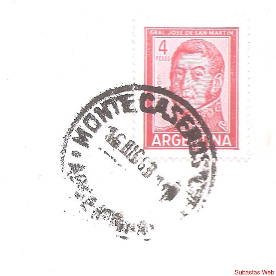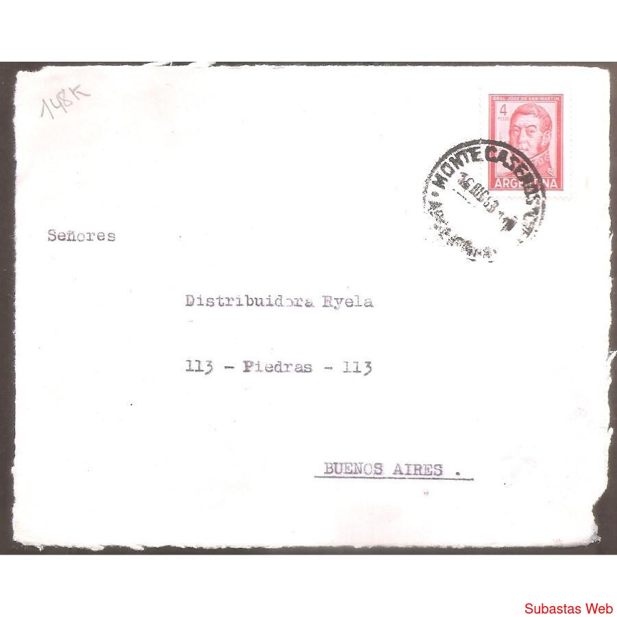 FRENTE DE SOBRE CIRCULADO EL 16 DE DICIEMBRE DE 1963 DE MONTE CASEROS CORRIENTES - A BUENOS AIRES CAPITAL- , FRANQUEO SAN MARTIN DE $4 PROCERES Y RIQUEZAS . MATASELLO DE MONTE CASEROS NO HAY DORSO