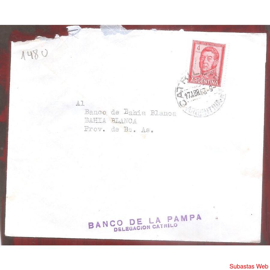 SOBRE CIRCULADO EL 17 DE ABRIL DE 1963 DE CATRILO, LA PAMPA - A BAHIA BLANCA- , FRANQUEO: PROCERES Y RIQUEZAS: SAN MARTIN DE $4 . MATASELLO DE CATRILO, NO HAY DORSO