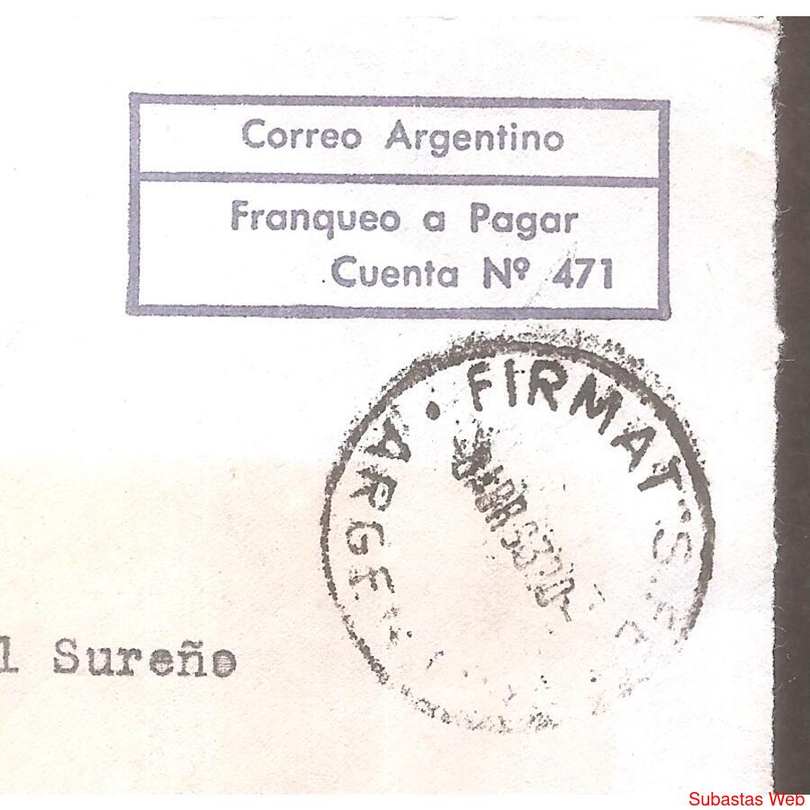 FRENTE DE SOBRE CIRCULADO EL 8 DE ABRIL DE 1963 DE FIRMAT, SANTA FE - A BAHIA BLANCA- , FRANQUEO: A PAGAR MATASELLO DE FIRMAT, NO HAY DORSO